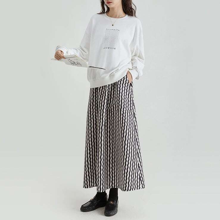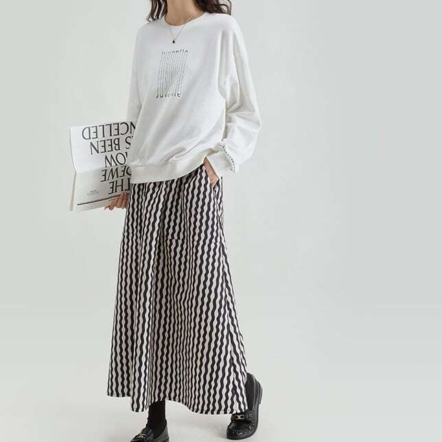 ロングスカートやワイドパンツなど、幅広いボトムスと合わせてお使いいただけます。