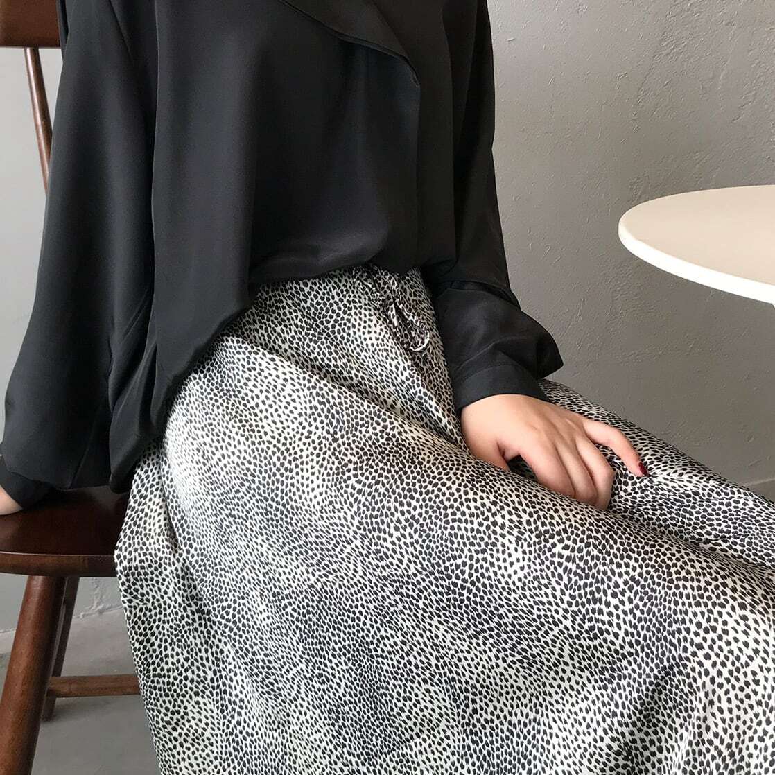 ビックシルエットのトップスを合わせてもすっきり見え、大人っぽく仕上げてくれるスカートです。