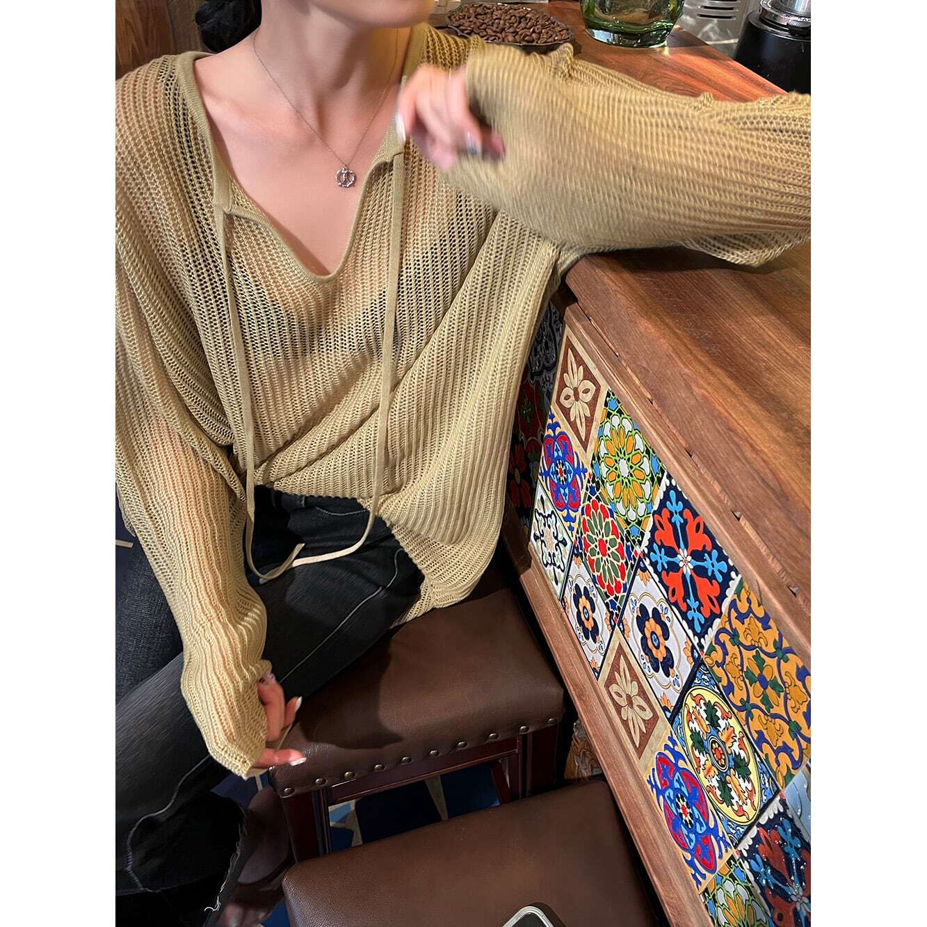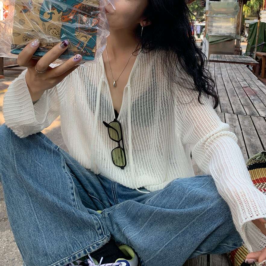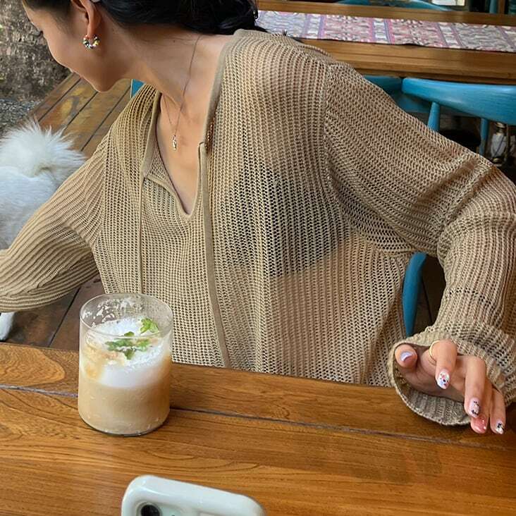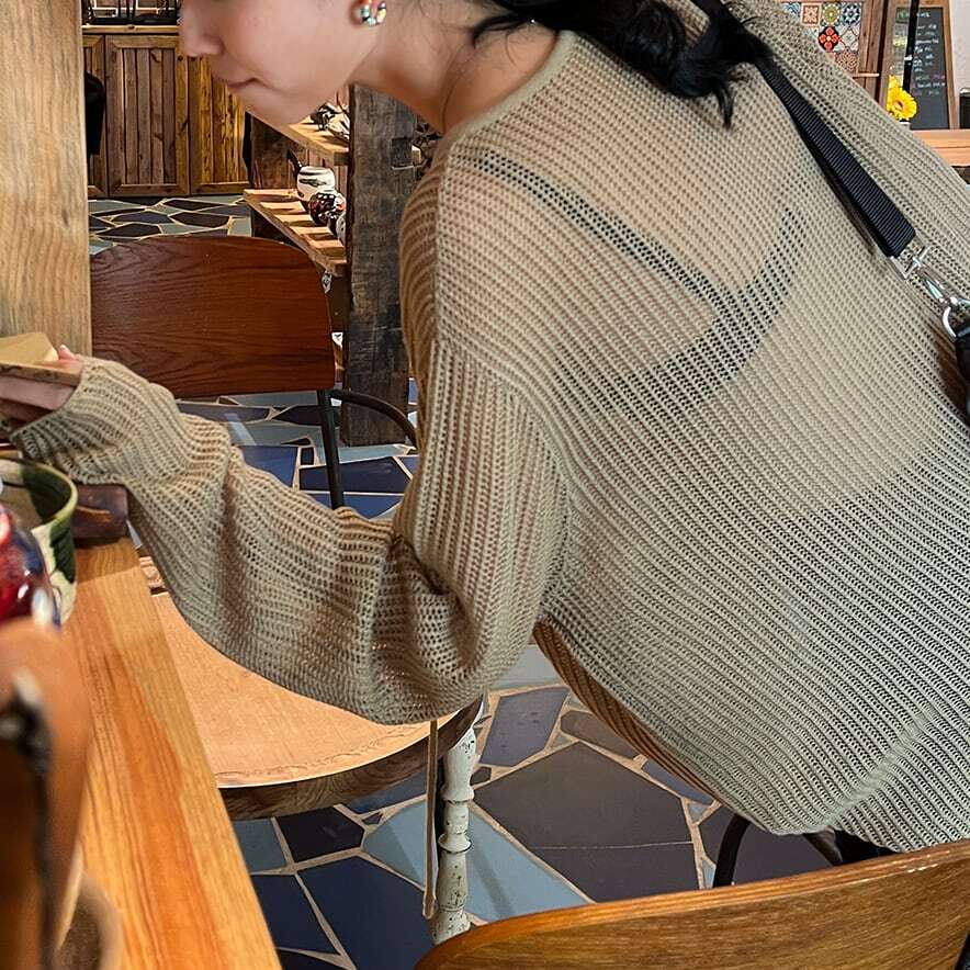 程よい透け感がポイントのニットプルオーバー。