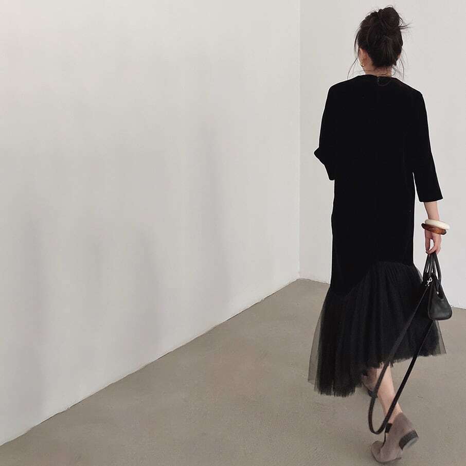 裾にたっぷりとギャザーを施したレディライクなワンピース。 パンプスはもちろん、ショートブーツでカジュアルに着こなすのもお勧めです。 【サイズ】 S 肩幅:38cm 胸囲:102cm 着丈:118cm 袖丈:43cm M 肩幅:40cm 胸囲:108cm 着丈:120cm 袖丈:44cm L 肩幅:42cm 胸囲:114cm 着丈:122cm 袖丈:45cm XL 肩幅:43cm 胸囲:120cm 着丈:124cm 袖丈:46cm ※海外製品につき1-3cm程度誤差がある場合がございます。 【素材】 ベルベット、チュール 【カラー】 ブラック ◼️apiapeでは、多数アイテムを取り揃えております。 下記URLよりぜひチェックしてみて下さい。 https://shop.apiabe.com/ ■今週の人気ランキングはこちら♪ https://shop.apiabe.com/categories/4955523 ****ご購入前に必ずお読みください**** https://shop.apiabe.com/about 【お届けについて】 こちらの商品は海外店舗より直接発送となる為、 ご入金から「10日~3週間前後」で発送致します。 ◼️注意事項 ・タイミングによっては 商品在庫切れにより 注文キャンセルとさせていただく恐れもございますので、予めご了承くださいませ。 ・こちらは輸入品となります。日本製とは検品基準が異なる為、 新品未使用品でもごくわずかな汚れや ほつれがある場合もございます。 ・仕入れ工場を変えることがあるため、記載サイズと若干異なる場合がございます。 ・商品の色味は、お手持ちのPCやスマートフォンの液晶画面の環境によって実物と若干異なる場合がございます。 ・イメージ違いやサイズ交換等、お客さまご都合による交換、返品は対応出来かねます。 【お支払方法】 ・クレジットカード決済 (VISA/Master/JCB/AMERICAN EXPRESS) ・キャリア決済 (docomo/au/SoftBank/Y!mobile/UQmobile) ・銀行振込 (三井住友銀行) ・コンビニ決済・Pay-easy ・後払い決済