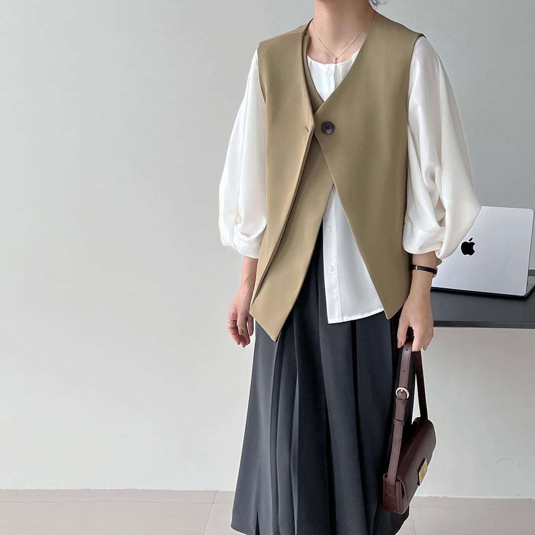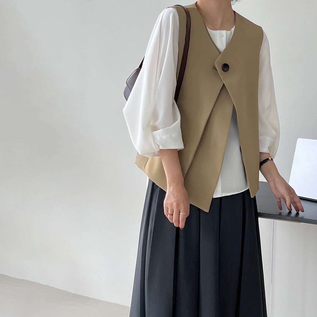 レイヤードスタイルに活躍するVネックベスト。 シンプルなロンTやカットソー、シャツはもちろん、ボリュームブラウスなどの着こなしもおすすめです。 【サイズ】 S 肩幅:38cm 胸囲:93cm 着丈:55cm M 肩幅:40cm 胸囲:97cm 着丈:56cm ※海外製品につき1-3cm程度誤差がある場合がございます。 【素材】 ポリエステル、スパンデックス 【カラー】 ベージュ ブラック ◼️apiapeでは、多数アイテムを取り揃えております。 下記URLよりぜひチェックしてみて下さい。 https://shop.apiabe.com/ ■今週の人気ランキングはこちら♪ https://shop.apiabe.com/categories/4955523 ****ご購入前に必ずお読みください**** https://shop.apiabe.com/about 【お届けについて】 こちらの商品は海外店舗より直接発送となる為、 ご入金から「10日~3週間前後」で発送致します。 ◼️注意事項 ・タイミングによっては 商品在庫切れにより 注文キャンセルとさせていただく恐れもございますので、予めご了承くださいませ。 ・こちらは輸入品となります。日本製とは検品基準が異なる為、 新品未使用品でもごくわずかな汚れや ほつれがある場合もございます。 ・仕入れ工場を変えることがあるため、記載サイズと若干異なる場合がございます。 ・商品の色味は、お手持ちのPCやスマートフォンの液晶画面の環境によって実物と若干異なる場合がございます。 ・イメージ違いやサイズ交換等、お客さまご都合による交換、返品は対応出来かねます。 【お支払方法】 ・クレジットカード決済 (VISA/Master/JCB/AMERICAN EXPRESS) ・キャリア決済 (docomo/au/SoftBank/Y!mobile/UQmobile) ・銀行振込 (三井住友銀行) ・コンビニ決済・Pay-easy ・後払い決済