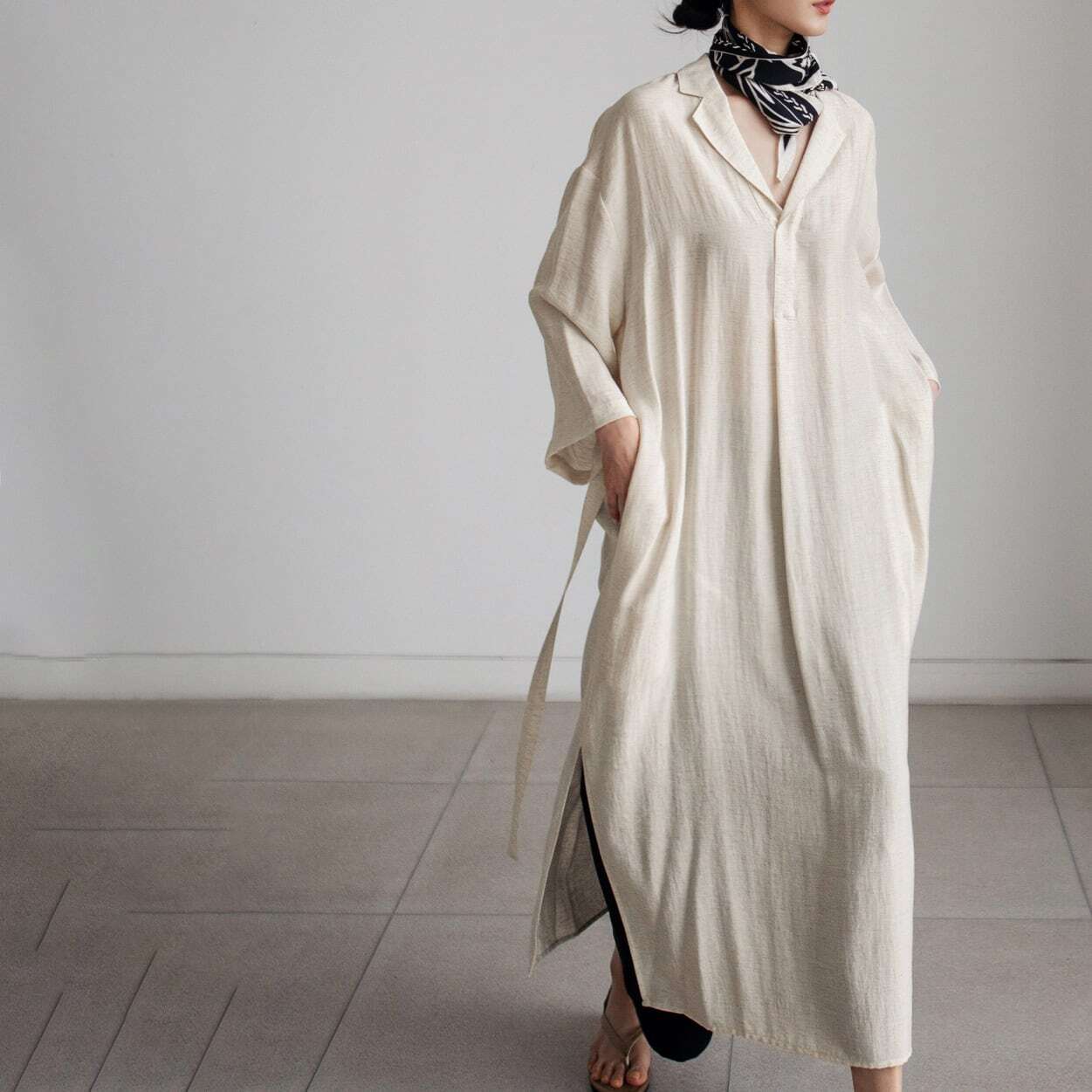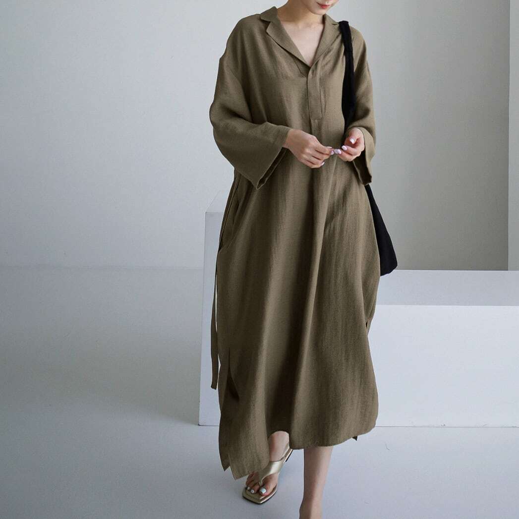 オープンカラーがめずらしいAラインワンピース。 1枚で着るのはもちろん、パンツと合わせてもオススメです。 【サイズ】 S 着丈:113cm 胸囲:100cm M 着丈:114cm 胸囲:104cm L 着丈:115cm 胸囲:108cm XL 着丈:116cm 胸囲:112cm ※モデル 160cm Mサイズ着用 ※海外製品につき1-3cm程度誤差がある場合がございます。 【カラー】 オフホワイト グレーベージュ ◼️apiapeでは、多数アイテムを取り揃えております。 下記URLよりぜひチェックしてみて下さい。 https://shop.apiabe.com/ ■今週の人気ランキングはこちら♪ https://shop.apiabe.com/categories/4955523 ****ご購入前に必ずお読みください**** https://shop.apiabe.com/about 【お届けについて】 こちらの商品は海外店舗より直接発送となる為、 ご入金から「10日~3週間前後」で発送致します。 ◼️注意事項 ・タイミングによっては 商品在庫切れにより 注文キャンセルとさせていただく恐れもございますので、予めご了承くださいませ。 ・こちらは輸入品となります。日本製とは検品基準が異なる為、 新品未使用品でもごくわずかな汚れや ほつれがある場合もございます。 ・仕入れ工場を変えることがあるため、記載サイズと若干異なる場合がございます。 ・商品の色味は、お手持ちのPCやスマートフォンの液晶画面の環境によって実物と若干異なる場合がございます。 ・イメージ違いやサイズ交換等、お客さまご都合による交換、返品は対応出来かねます。 【お支払方法】 ・クレジットカード決済 (VISA/Master/JCB/AMERICAN EXPRESS) ・キャリア決済 (docomo/au/SoftBank/Y!mobile/UQmobile) ・銀行振込 (三井住友銀行) ・コンビニ決済・Pay-easy ・後払い決済