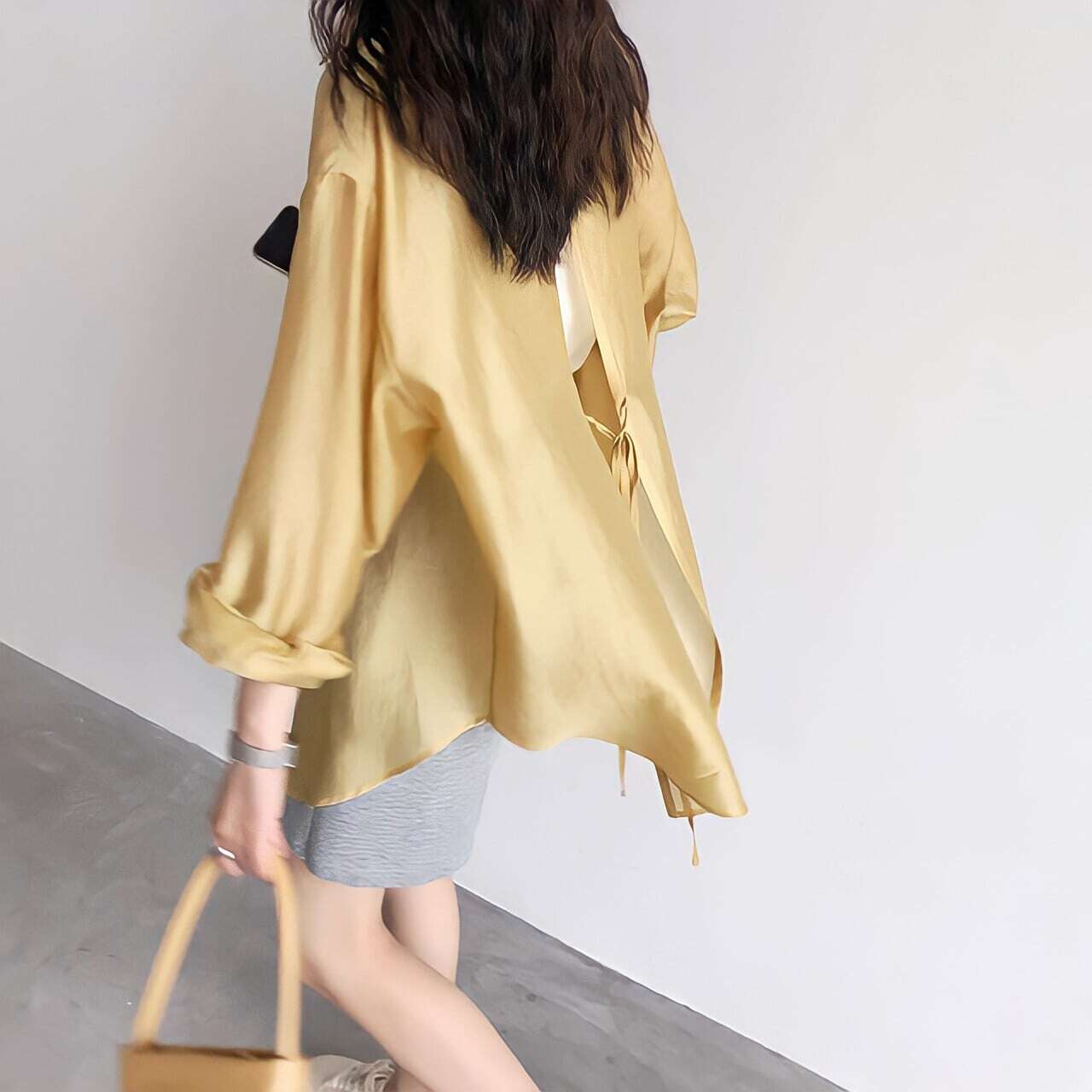 少しシアー感のある微光沢素材のシャツ。 後ろ姿も抜かりなく、大きく入ったスリットとリボンが魅力のデザインです。 【サイズ】 Sサイズ 着丈:72cm 胸囲:111cm 袖丈:51cm 肩幅:50cm Mサイズ 着丈:74cm 胸囲:115cm 袖丈:52cm 肩幅:51cm Lサイズ 着丈:76cm 胸囲:119cm 袖丈:53cm 肩幅:52cm XLサイズ 着丈:78cm 胸囲:123cm 袖丈:54cm 肩幅:53cm ※モデルサイズ 163cm Mサイズ ※海外製品につき1-3cm程度誤差がある場合がございます。 【素材】 ポリエステル 【カラー】 オフホワイト イエロー ブルー ピンク ◼️apiapeでは、多数アイテムを取り揃えております。 下記URLよりぜひチェックしてみて下さい。 https://shop.apiabe.com/ ■今週の人気ランキングはこちら♪ https://shop.apiabe.com/categories/4955523 ****ご購入前に必ずお読みください**** https://shop.apiabe.com/about 【お届けについて】 こちらの商品は海外店舗より直接発送となる為、 ご入金から「10日~3週間前後」で発送致します。 ◼️注意事項 ・タイミングによっては 商品在庫切れにより 注文キャンセルとさせていただく恐れもございますので、予めご了承くださいませ。 ・こちらは輸入品となります。日本製とは検品基準が異なる為、 新品未使用品でもごくわずかな汚れや ほつれがある場合もございます。 ・仕入れ工場を変えることがあるため、記載サイズと若干異なる場合がございます。 ・商品の色味は、お手持ちのPCやスマートフォンの液晶画面の環境によって実物と若干異なる場合がございます。 ・イメージ違いやサイズ交換等、お客さまご都合による交換、返品は対応出来かねます。 【お支払方法】 ・クレジットカード決済 (VISA/Master/JCB/AMERICAN EXPRESS) ・キャリア決済 (docomo/au/SoftBank/Y!mobile/UQmobile) ・銀行振込 (三井住友銀行) ・コンビニ決済・Pay-easy ・後払い決済