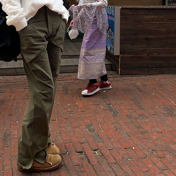 M ウエスト:68cm ヒップ:100cm パンツ丈:108cm 裾幅:44cm