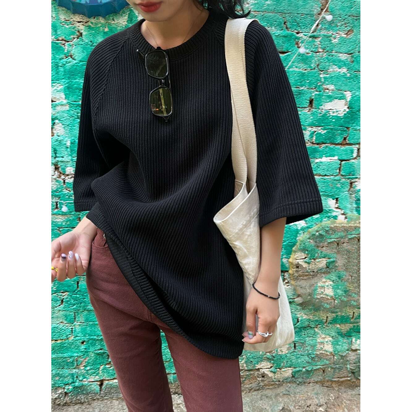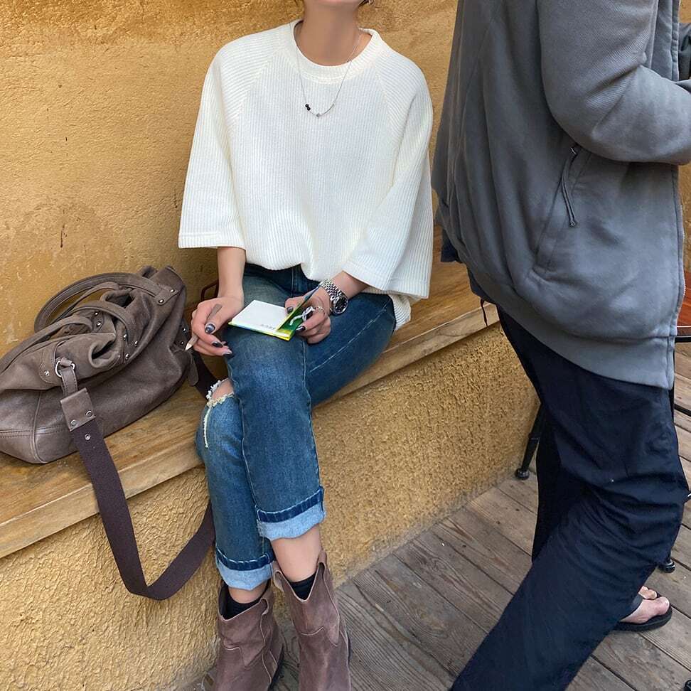 ゆとりのあるシルエットのカジュアルトップス。