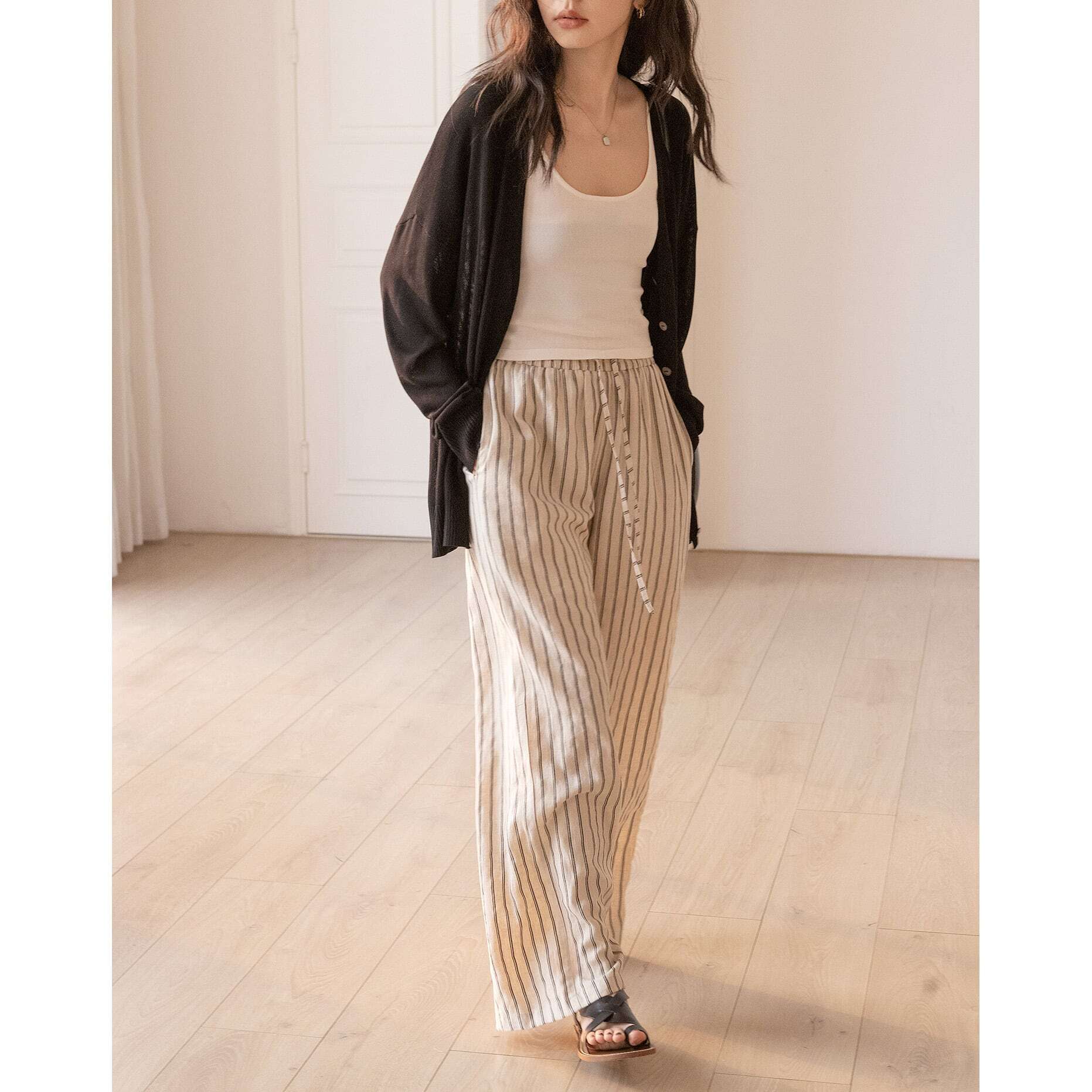 落ち感のあるすっきりとしたワイドパンツ。 カットソーやブラウスなどトップスを選ばず使えるアイテムです。 【サイズ】 XS ウエスト:60-70cm ヒップ:100cm パンツ丈:99cm 股上:29cm 裾幅:53cm S ウエスト:64-74cm ヒップ:104cm パンツ丈:103cm 股上:30cm 裾幅:55cm M ウエスト:68-78cm ヒップ:108cm パンツ丈:105cm 股上:31cm 裾幅:57cm L ウエスト:72-82cm ヒップ:112cm パンツ丈:107cm 股上:32cm 裾幅:59cm ※モデル 165cm Mサイズ着用 ※海外製品につき1-3cm程度誤差がある場合がございます。 【素材】 リネン、コットン 【カラー】 オフホワイト ◼️apiapeでは、多数アイテムを取り揃えております。 下記URLよりぜひチェックしてみて下さい。 https://shop.apiabe.com/ ■今週の人気ランキングはこちら♪ https://shop.apiabe.com/categories/4955523 ****ご購入前に必ずお読みください**** https://shop.apiabe.com/about 【お届けについて】 こちらの商品は海外店舗より直接発送となる為、 ご入金から「10日~3週間前後」で発送致します。 ◼️注意事項 ・タイミングによっては 商品在庫切れにより 注文キャンセルとさせていただく恐れもございますので、予めご了承くださいませ。 ・こちらは輸入品となります。日本製とは検品基準が異なる為、 新品未使用品でもごくわずかな汚れや ほつれがある場合もございます。 ・仕入れ工場を変えることがあるため、記載サイズと若干異なる場合がございます。 ・商品の色味は、お手持ちのPCやスマートフォンの液晶画面の環境によって実物と若干異なる場合がございます。 ・イメージ違いやサイズ交換等、お客さまご都合による交換、返品は対応出来かねます。 【お支払方法】 ・クレジットカード決済 (VISA/Master/JCB/AMERICAN EXPRESS) ・キャリア決済 (docomo/au/SoftBank/Y!mobile/UQmobile) ・銀行振込 (三井住友銀行) ・コンビニ決済・Pay-easy ・後払い決済