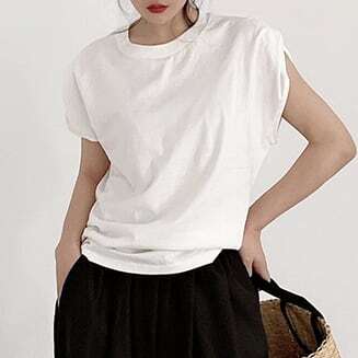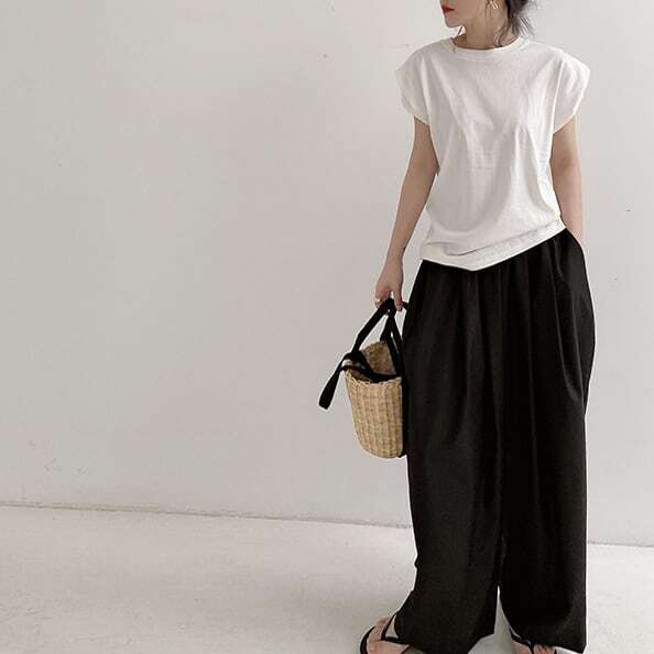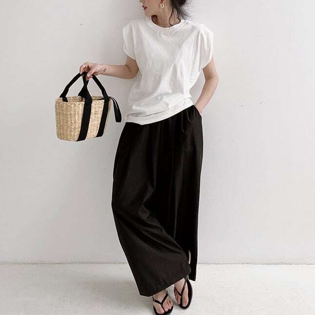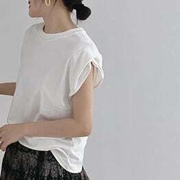 シンプルなデザインで、こなれ感を演出してくれるフェミニンTシャツ。