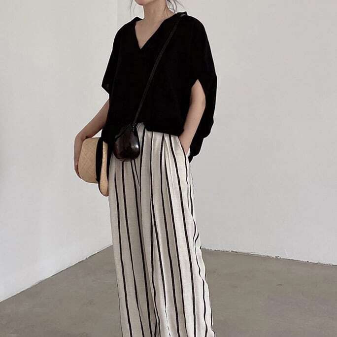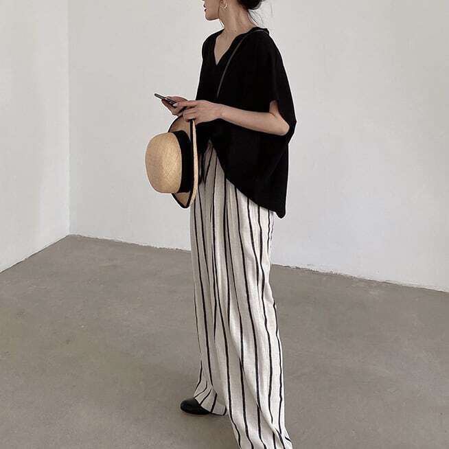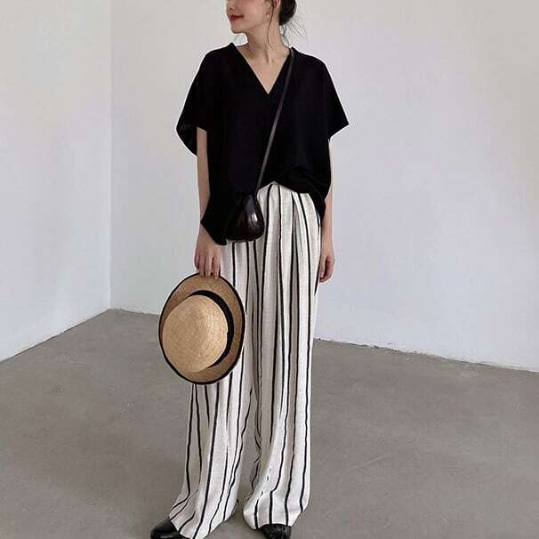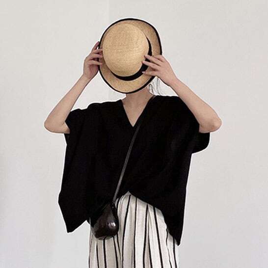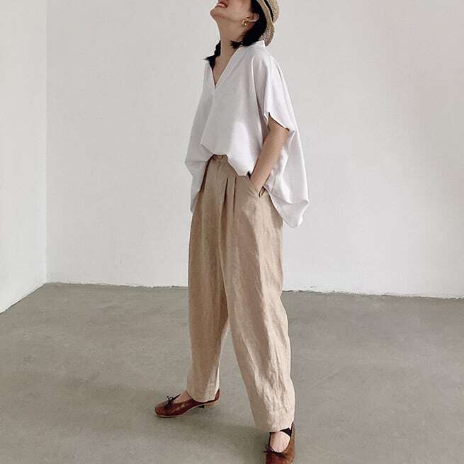 リラックス感あるスタイリングを楽しめるVネックトップス。