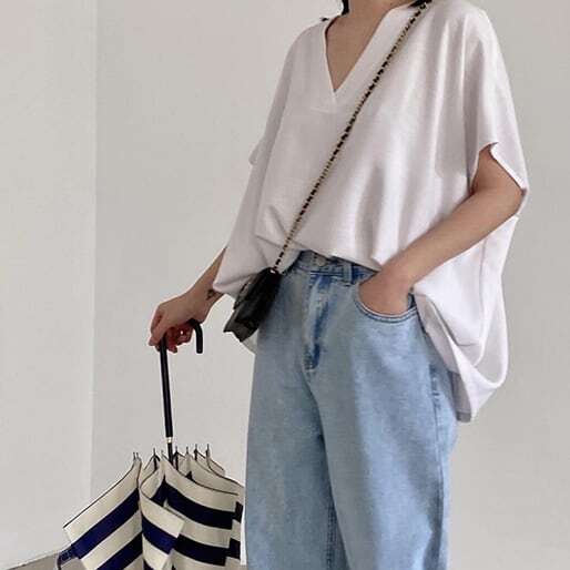 こなれ感のあるオーバーサイズシルエットと、デコルテラインがキレイに見えるVネックが魅力的な一枚です。