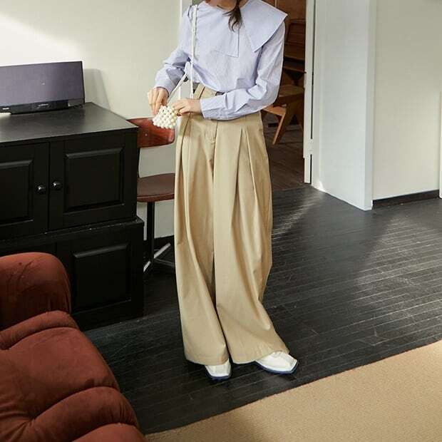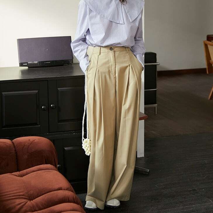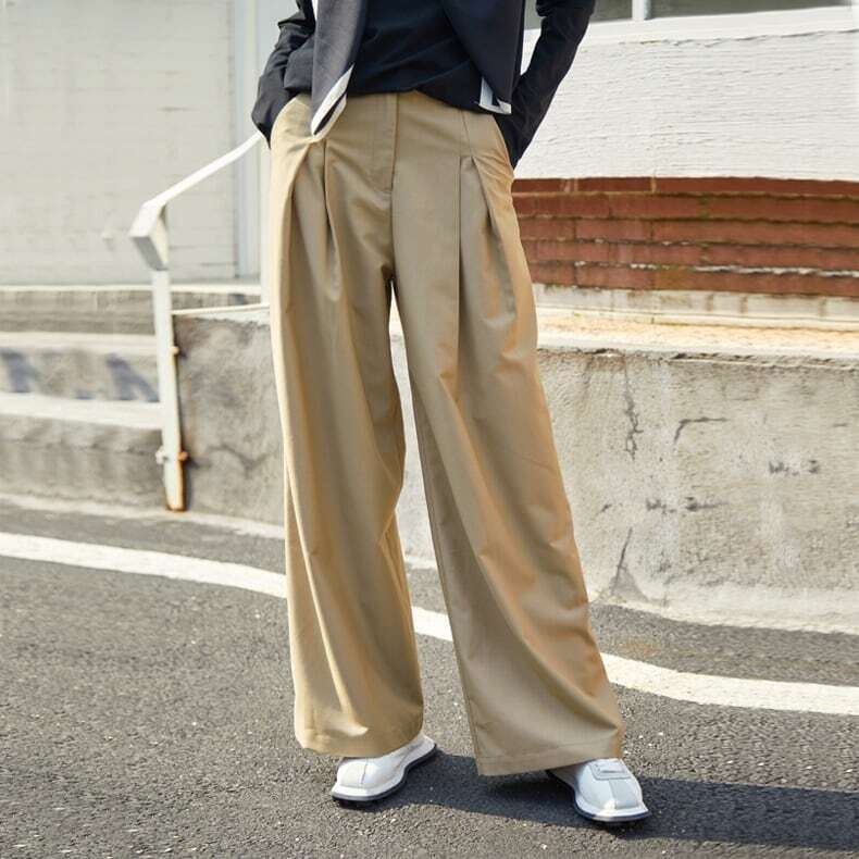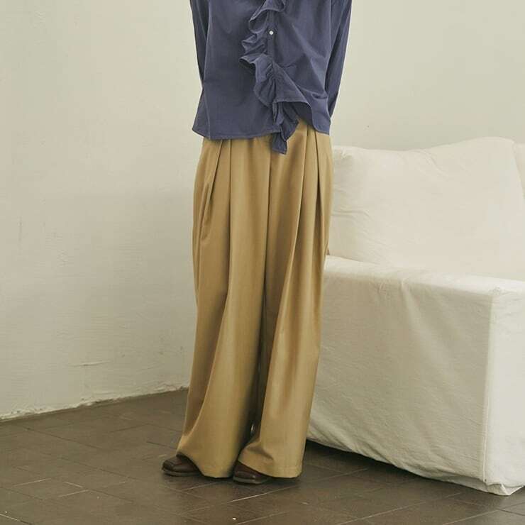 軽やかな生地感と、ゆったりとしたシルエットが特徴のワイドパンツ。